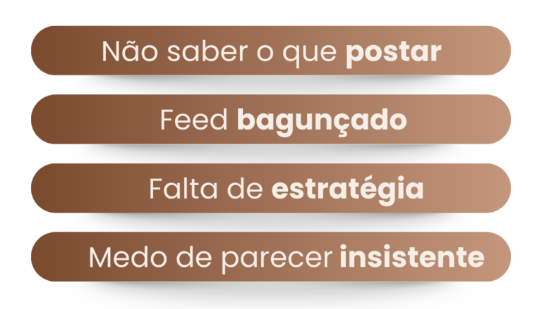 Todos os posts já vêm com legendas prontas, pensadas para engajar e vender.