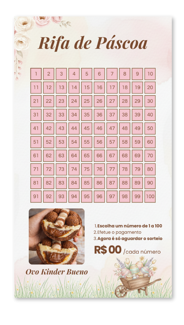 Modelo pronto para criar rifas, gerar engajamento e aumentar a visibilidade do seu perfil durante a Páscoa.
