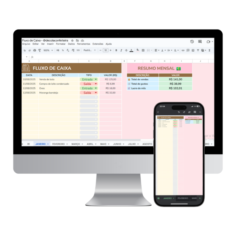 Ferramenta simples e prática para controlar suas entradas, saídas e lucro do mês.