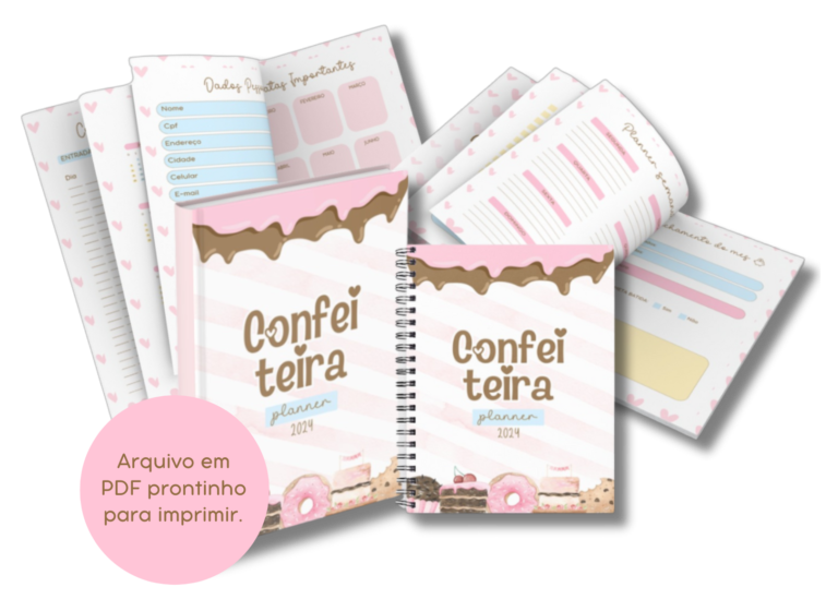 O Planner da Confeiteira é um arquivo em PDF totalmente pronto para imprimir, criado para te ajudar a ter organização, clareza
